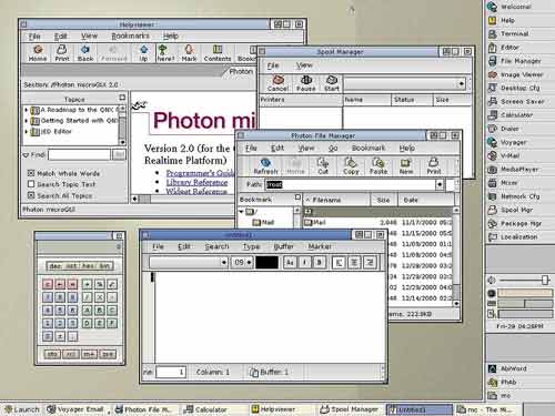 Большинство графических оболочек, существующих на настоящий момент, не удовлетворяют требованиям встраиваемости: во-первых, они громоздки и плохо масштабируются, а во-вторых, очень ресурсоемки. В связи с этим специально для нужд встраиваемых систем в QSSL была разработана встраиваемая графическая оболочка Photon microGUI, работавшая тогда под управлением QNX4 и очень хорошо себя зарекомендовавшая как быстрая, компактная и удобная пользовательская среда.