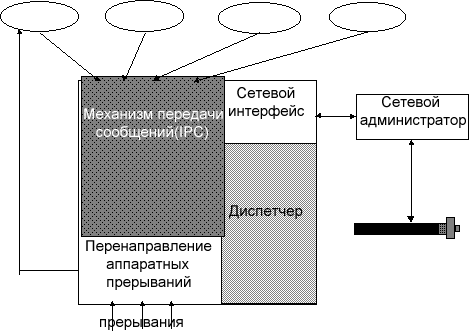 При поддержке монолитных ОС возникает ряд проблем, связанных с тем, что все функции макроядра работают в едином адресном пространстве. Во первых - это опасность возникновения конфликта между различными частями ядра, во вторых - сложность подключения к ядру новых драйверов. Преимущество микроядерной архитектуры заключается в том, что каждый компонент системы представляет собой самостоятельный процесс, запуск или остановка которого не отражается на работоспособности остальных процессов. Основная идея, заложенная в технологию микроядра, будь то операционная система или графический интерфейс, заключается в том, чтобы конструировать необходимую среду верхнего уровня, из которой можно легко получить доступ ко всем функциональным возможностям уровня аппаратного обеспечения. При такой структуре ядро служит стартовой точкой для создания системы. Искусство разработки микроядра заключается в выборе примитивов, которые должны в нем находиться для обеспечения необходимого и достаточного сервиса.