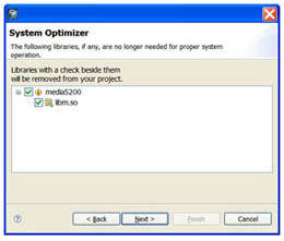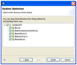 Рис 3. Использование системного оптимизатора для удаления функций из библиотек. |