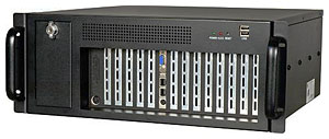 19" корпус 4U для 14 слотовой объединительной платы, отсеки для накопителей 1x5.25"/открытый, 1x3.5"/открытый, 1x3.5"/закрытый, источник питания ACE-935AL-RS, RoHS |
