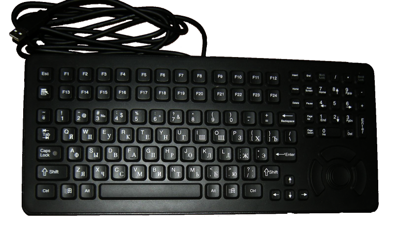 Русифицированная защищенная настольная прорезиненая клавиатура в пластиковом корпусе, 116-клавишн., с интегрированым указат. устройством HulaPoint, IP65, USB-интерфейс |