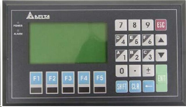 Delta Electronics, Текстовая панель с 5-ю или 8-ю строками вывода информации и встроенной клавиатурой. Встроенные порты RS-485 и RS-232. Поддерживает различные протоколы обмена данными. Слот для карты копирования.