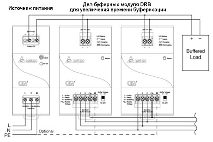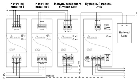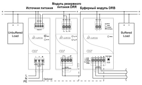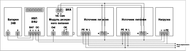 Возможно использование модуля DRR для резервирования и параллельной работы с модулем DRU для бесперебойного питания: