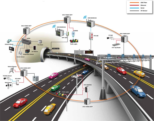 Интеллектуальная транспортная система (ITS) Интеллектуальная транспортная система интегрирует передовую электронику, информационные технологии и последние достижения в области датчиков для управления в реальном времени дорожной инфраструктурой, пешеходными переходами, трафиком. Система повышает безопасность, удобство и эффективность использования транспорта, уменьшает выбросы CO и вредное воздействие на окружающую среду, способствует экономическому развитию. Система сключает в себя: - Систему мониторинга транспортного потока на автостраде
