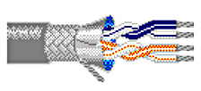 | | Конструкция проводников | Многожильные | | Материал проводника | Луженая медь | | Сечение AWG | 24 (7232) | | Количество витых пар | 2 шт | | Сечение | 0,2 мм2 | Физические характеристики