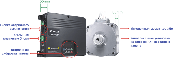 - Управление асинхронным и синхронным (с постоянными магнитами) двигателем Двигатели с постоянными магнитами характеризуются высоким крутящим моментом в сочетании с компактными размерами.Поддерживаются двигатели Delta ECMD-B9 или другие двигатели с постоянными магнитами, оснащенные энкодером.Поддержка асинхронных двигателей с энкодерами (открытый коллектор, напряжение 5-12 В DC)
