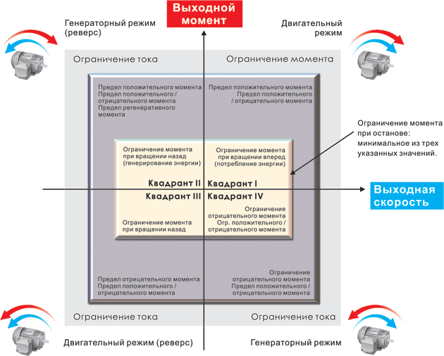 - Ограничение тока при разгоне, торможении и постоянной работе двигателя