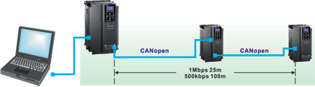 - Протокол CANopen (Ведущий) и функции ПЛК обеспечивают синхронизацию процесса управления и быстрый обмен данными.