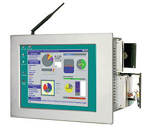 , Панельная рабочая станция с 15" TFT LCD, алюминиевая передняя панель, процессорная плата LGA775 POS-6614, отсеки 1x5.25" Slim/1x3.5" Slim/2x3.5", слоты 1xPCI, 1xPCI-E x1, 1xCF II, WLAN 802.11b/g, сенсорный экран, источник питания 250Вт ATX