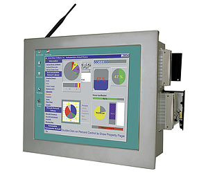 Панельная рабочая станция с 19" TFT LCD, алюминиевая передняя панель, процессорная плата LGA775 POS-6614, отсеки 1x5.25" Slim/1x3.5" Slim/2x3.5", слоты 1xPCI, 1xPCIe x1, 1xCF II, WLAN 802.11b/g, сенсорный экран, источник питания 250Вт ATX |