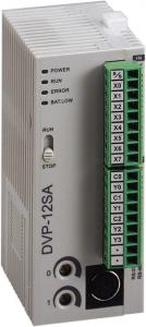 Delta Electronics, Модульный многофункциональный ПЛК с расширенным объемом памяти, модули расширения от DVP-SS, 12 точек вв./выв. (8DI, 4 DO) с расширением до 236, 2 встроенных потенциометра, автонастройка ПИД