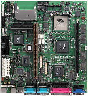 ХарактеристикиФормат LPX Процессор VIA Eden 400/667/800 МГц (установлен) Чипсет VIA 8601A, VT82C686B ОЗУ SDRAM (1xDIMM), до 512 Mбайт (по заказу до 128 Mбайт на плате) Видеосистема: Разрешение до 1280x1024 точек, поддержка TFT-панелей Поддержка твердотельной памяти: CompactFlash, DiskOnChip Расширения: 1xPCI/ISA Порты ввода-вывода: 2xEIDE (UDMA100), 1xклавиатура, 1xмышь, 4xRS-232, 2xLPT, 1xIrDA, аудио-интерфейс, 4xUSB Ethernet: 10/100Base-T Дополнительная информация Руководство пользователя(PDF 1,90 МБ) Спецификация(PDF 0,21 МБ) Информация об этом продукте на сайте производителя