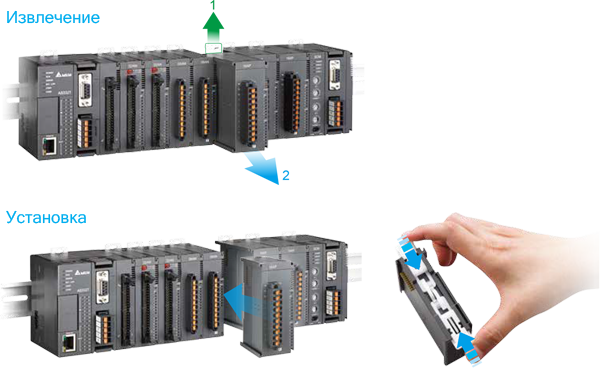 Клеммный модуль встроенных каналов ввода/вывода для ЦПУ AS300 (необязательное дополнение к кабелю UC-ET010-24D) |