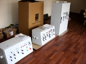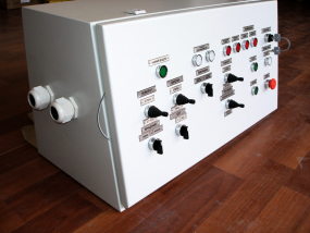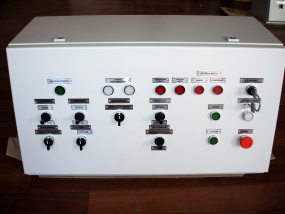Пульт управления гидравлической машиной для пробивки летки доменной печи. Состоит из шкафа управления и стационарных пультов управления.