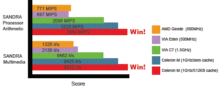 Встроенный процессор Intel® Celeron® M (1.0GHz 512KB L2 Cache обеспечивает наилучшее соотношение производительность/энергопортребление. По сравнению с моделями на процессорах AMD LX и C7, вычислительная и мультимедийная производительность в новых моделях AFL-…..-915G увеличена в 5 и более раз.