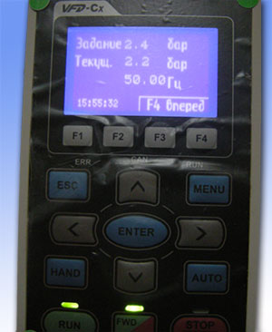 На штатном пульте ПЧ добавляем странички, с помощью которых оператор будет редактировать расписание (суточное, недельное или какое-то другое): временные интервалы и соответствующие им уставки давления. ПЧ имеет встроенные часы реального времени.