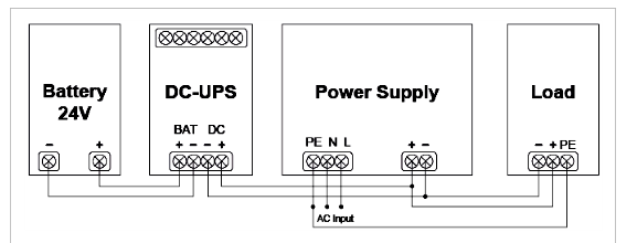 Устройство предназначено для работы во вторичных цепях питания промышленной электроники и автоматики с напряжением 24 V DC, и может обеспечивать до 4,5 минут автономной работы системы с током потребления до 40 А.