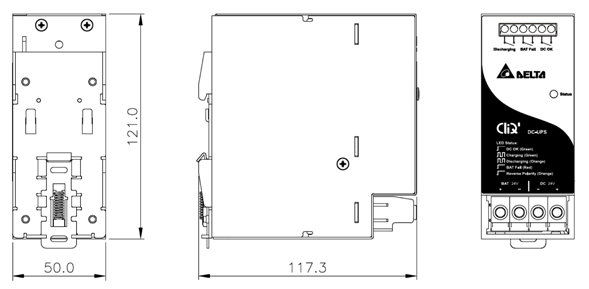 Модульный ИБП с креплением на DIN профиль, имеет привычное исполнение, характерное для всех продуктов этой серии. Его размеры 121 х 50 х 117,3 мм, вес 0,6 кг.