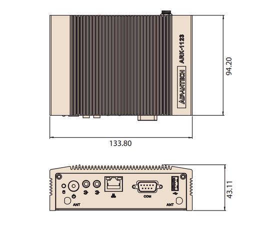 Модель ARK-1123H-U0A1E – это первое компактное решение (133x43x94 мм), которое выполнено на базе процессора Intel Celeron J1900 с частотой до 2,0 ГГц. Компьютер имеет возможность установки обычного 2,5” жесткого диска или твердотельного накопителя mSATA, имеет 2 разъема Gigabit Ethernet, а также 2 слота miniPCIe для модулей беспроводной связи 3G/4G или Wi-Fi.