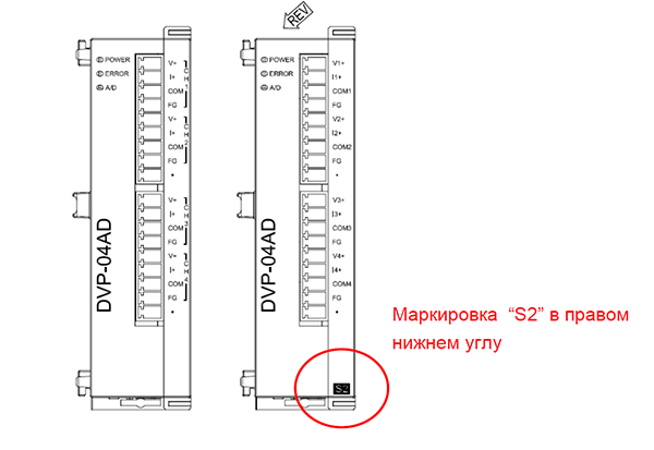 Модернизация затронула модули аналогового ввода DVP04AD-S2 и DVP06XA-S2, модули аналогового вывода DVP04DA-S2.