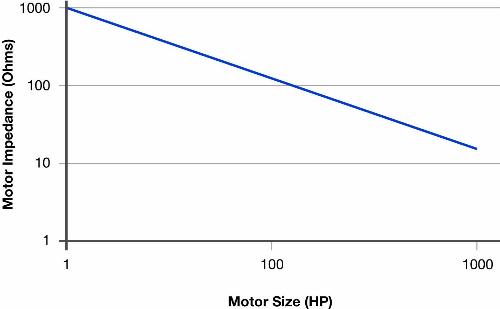 Согласно исследованию Belden, импеданс асинхронных двигателей переменного тока зависит от мощности следующим образом: