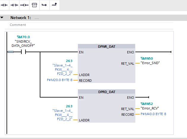 Рис 7. Фрагмент программы обмена ПЛК S7-1500