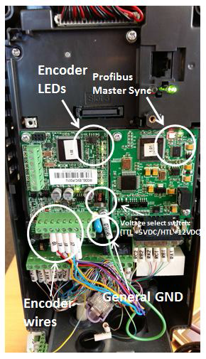 Для того, что бы иметь возможность работать с позиционированием, необходимо установить в привод С2000 дополнительную плату энкодера, соответствующую его типу, например EMC-PG01, а так же плату интерфейса Profibus-DP CMP-01. Не забудьте подсоединить землю (GND) платы энкодера к общей земле GND, иначе не исключен отказ энкодера.