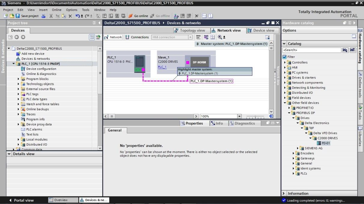 TIA портал начинает “видеть” привод C2000 после установки файла Delta C2000 .gsd в конфигурацию оборудования