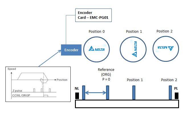 Инкрементальные энкодеры не запоминают свою позицию при пропадании питания, поэтому сразу же после включения необходимо найти точку отсчета , относительно которой будет осущетсвляться дальнейшее движение.