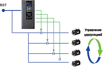 Преобразователь может управлять сразу несколькими насосами (до 8-ми) , имеет встроенные алгоритмы циркуляции, обеспечивающие постоянное давление и гарантирующие равномерный износ, защищающие их от коррозии, встроенный режим энергосбережения, ПИД регулятор, предустановленные скорости, пропуск резонансных частот.