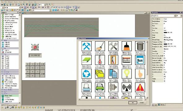 Для целей программирования панелей служит совершенно бесплатное ПО под названием «Screen Editor». Конфигурация всего проекта, включая архивы, журналы историй, тренды, проводится с помощью этого редактора. Это очень удобный инструмент, снабженный множеством готовых графических компонентов, которые легко вытащить из библиотек и разместить на экране. Работа с программным обеспечением «Screen Editor» подробно описана в [1], где также описывается работа с макроязыком панелей. На рисунке 6 приведена копия рабочего окна программы «Screen Editor».